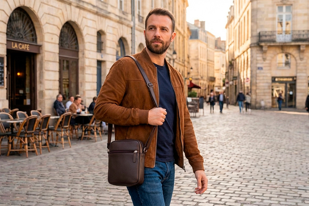 Uma bolsa de couro masculina se adapta a diferentes momentos do dia: do ambiente corporativo ao fim de semana fora da cidade. Ela compõe o visual com personalidade, sem parecer exagerada. O couro tem essa vantagem — fala por si. Um modelo bem escolhido substitui mochilas convencionais e até pastas sem perder em praticidade, só que com mais presença.