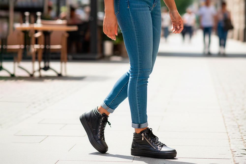 - Tênis de couro: ótimo com leggings e uma jaqueta jeans para um look confortável de dia a dia.