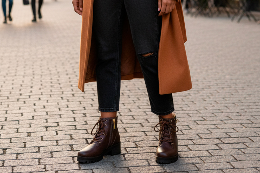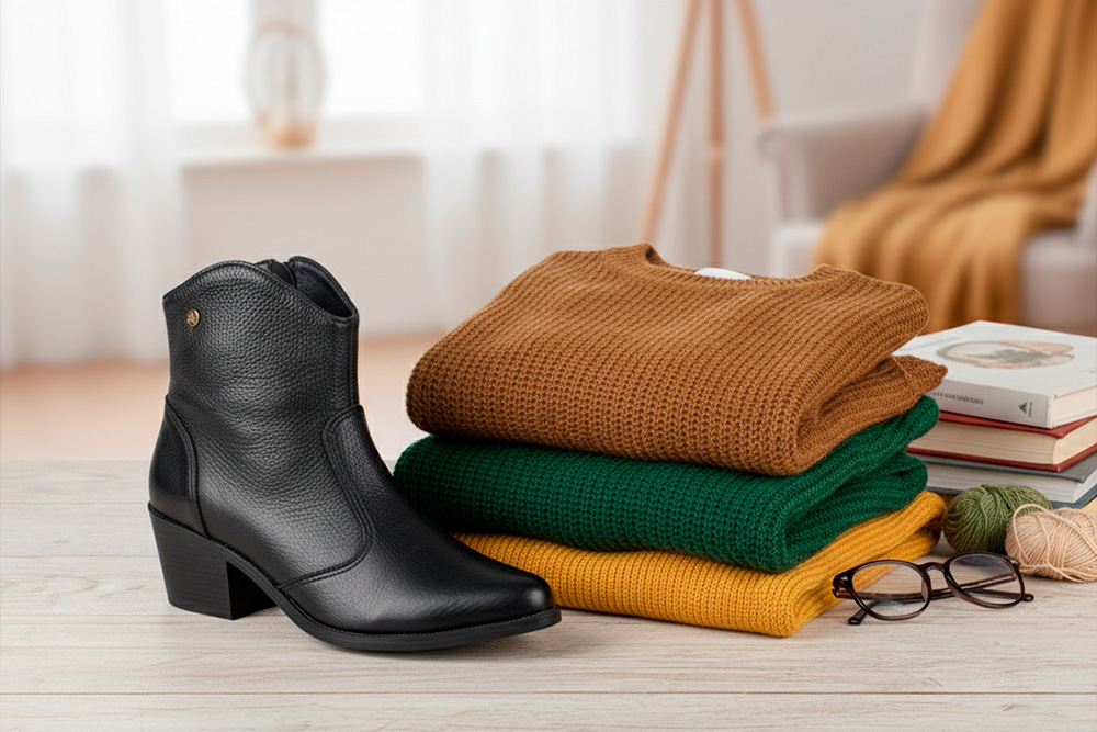 Escolher o calçado certo é essencial para um look de outono completo. As botas de couro são ótimas aliadas para proteger do frio, criando produções urbanas e alinhadas. Já os coturnos, com seu visual mais robusto, ficam perfeitos com jeans e jaquetas. Para quem prefere algo casual sem abrir mão da elegância, o tênis de couro é a pedida ideal nos dias fresquinhos. E, dentro de casa, nada melhor do que pantufas em couro: confortáveis, quentinhas e com aquele charme que faz diferença até nos momentos de descanso.