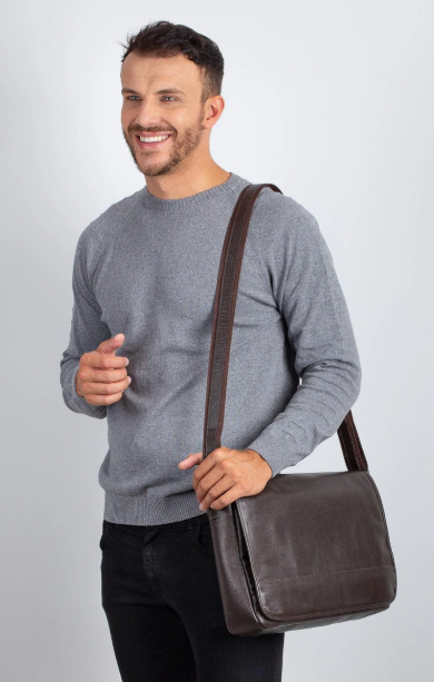 Ela se caracteriza pelo design funcional, com alça longa e ajustável que permite usá-la no ombro ou cruzada no corpo. Inspirada nas bolsas de carteiros, sua estrutura prioriza a praticidade, com compartimentos que mantêm tudo organizado e fácil de acessar. Feita de couro legítimo, é resistente, versátil e elegante.